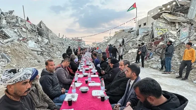 ধ্বংসস্তূপে ইফতার করলেন ফিলিস্তিনিরা...