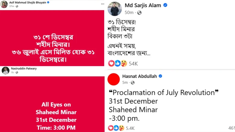৩১ ডিসেম্বর দেয়া হবে জুলাই বিপ্লবের ঘোষণা পত্র...