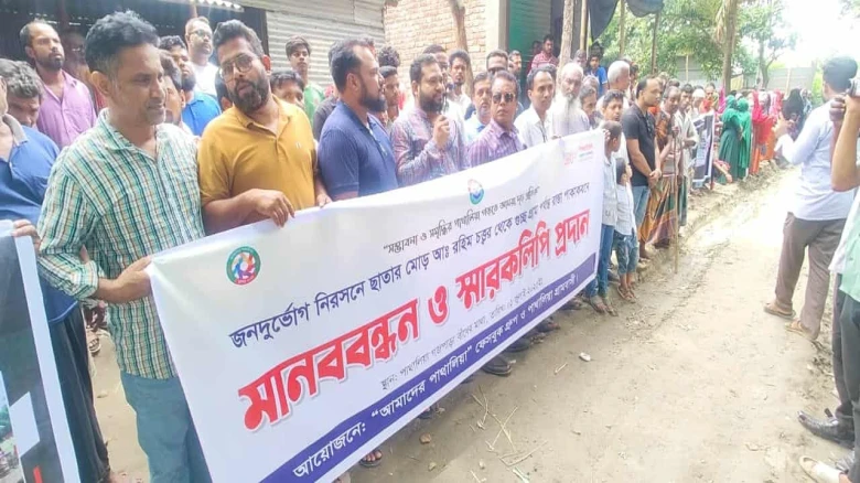 জামালপুরে রাস্তা পাকা করণের দাবীতে মানববন্ধন...